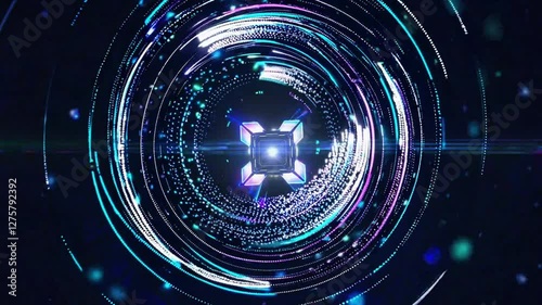 Wall mural : Abstract technology background with glowing circular lines and a central geometric shape, representi