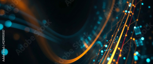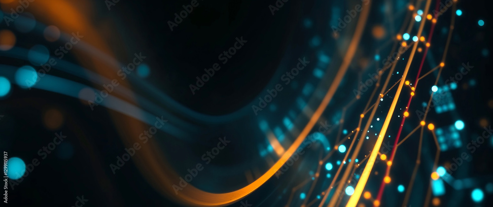 Wall mural : Abstract technology background with glowing lines and particles flowing