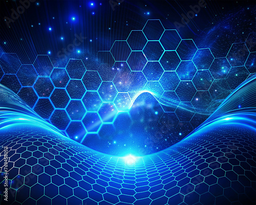 Wall mural abstract technology background with hexagons and glowing lines. vector illustration