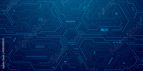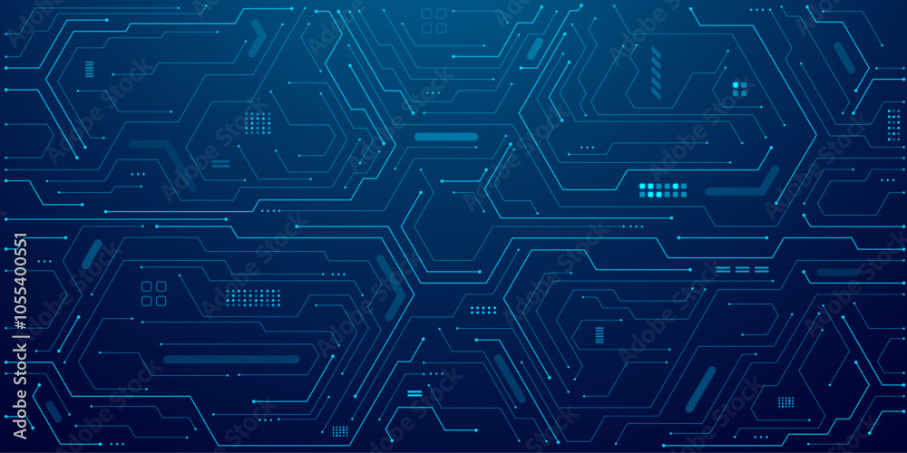 Wall mural : Abstract technology background - ai circuit board with electronics elements in electric blue on tech