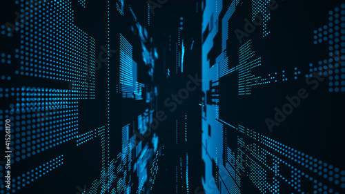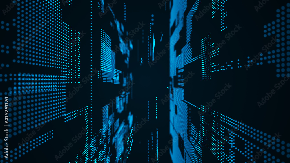 Wall mural abstract technology background. computer matrix. futuristic cyber background of particles. 3d render