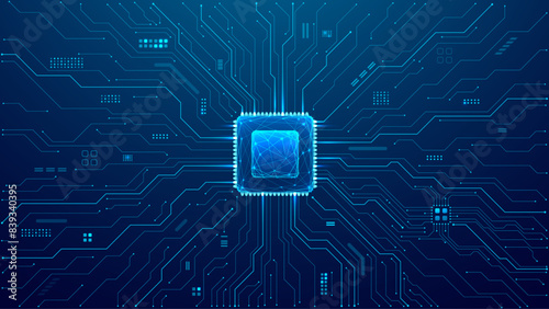 Wall mural abstract technology circuit board and processor. ai chip or cpu semiconductor. tech background with  - Wall murals Wall mural abstract technology circuit board and processor. ai chip or cpu semiconductor. tech background with - Wall murals