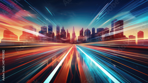 Wall mural : Abstract technology concept background - high speed internet and skyline - , generative ai