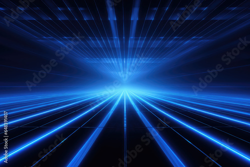 Wall mural abstract technology concept perspective grid line up and down side with neon light background. - Wall murals Wall mural abstract technology concept perspective grid line up and down side with neon light background. - Wall murals