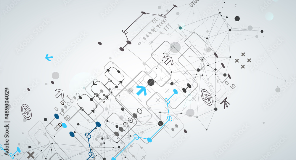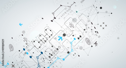 Wall mural abstract technology concept with plexus effect. circuit board, high computer color background. vecto