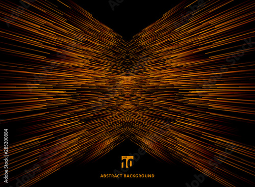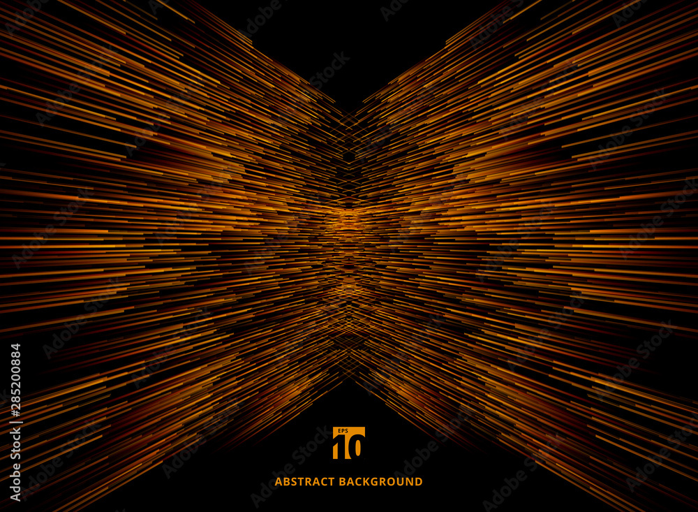 Wall mural : Abstract technology data connection speed orange lines perspective on dark background -