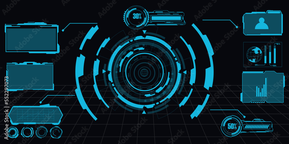 Wall mural abstract technology futuristic concept hud interface hologram elements of digital data and circle - Wall murals Wall mural abstract technology futuristic concept hud interface hologram elements of digital data and circle - Wall murals