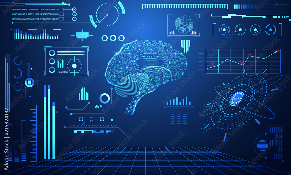 Wall mural abstract technology science concept brain data health digital : hud interface elements of medicine a - Wall murals Wall mural abstract technology science concept brain data health digital : hud interface elements of medicine a - Wall murals