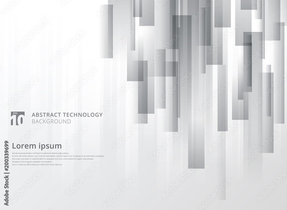 Wall mural : Abstract technology vertical overlap geometric squares shape gray colour on white background with co