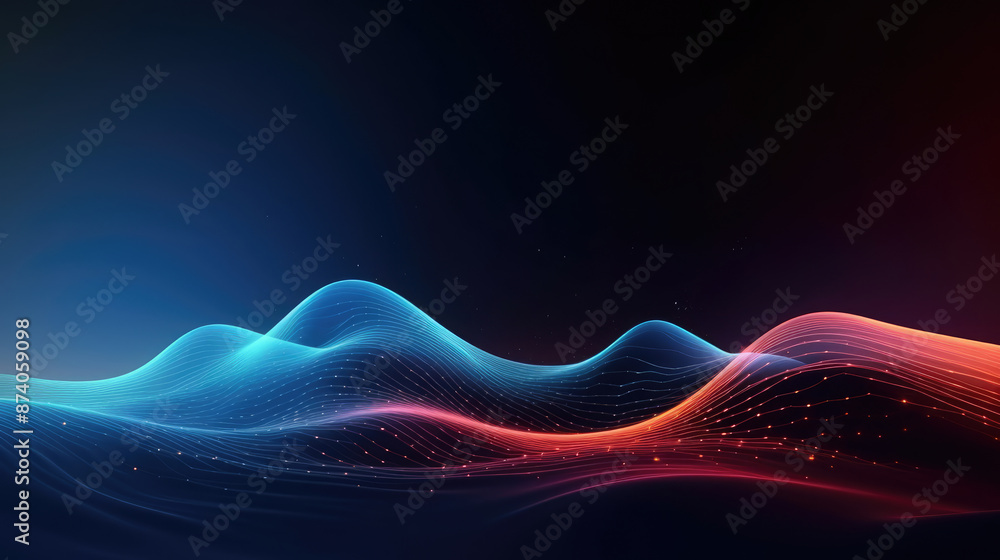 The watermark will not be included on Wall mural.: Abstract technology wave background with glowing particles - illustration for your design - , generativ