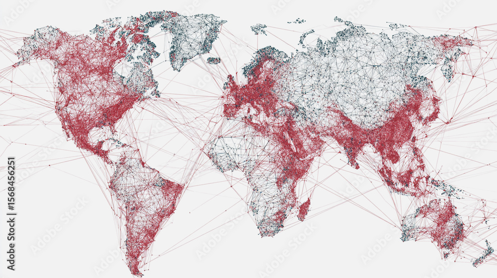 Wall mural abstract technology white background. earth network with glowing nodes and net lines business connec - Wall murals Wall mural abstract technology white background. earth network with glowing nodes and net lines business connec - Wall murals