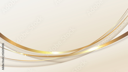 Wall mural abstract template background 3d elegant golden curved shape with shiny gold line sparkling lighting