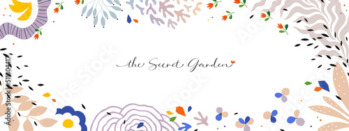 Wall mural abstract template with floral and geometric elements on white background. suitable for email header