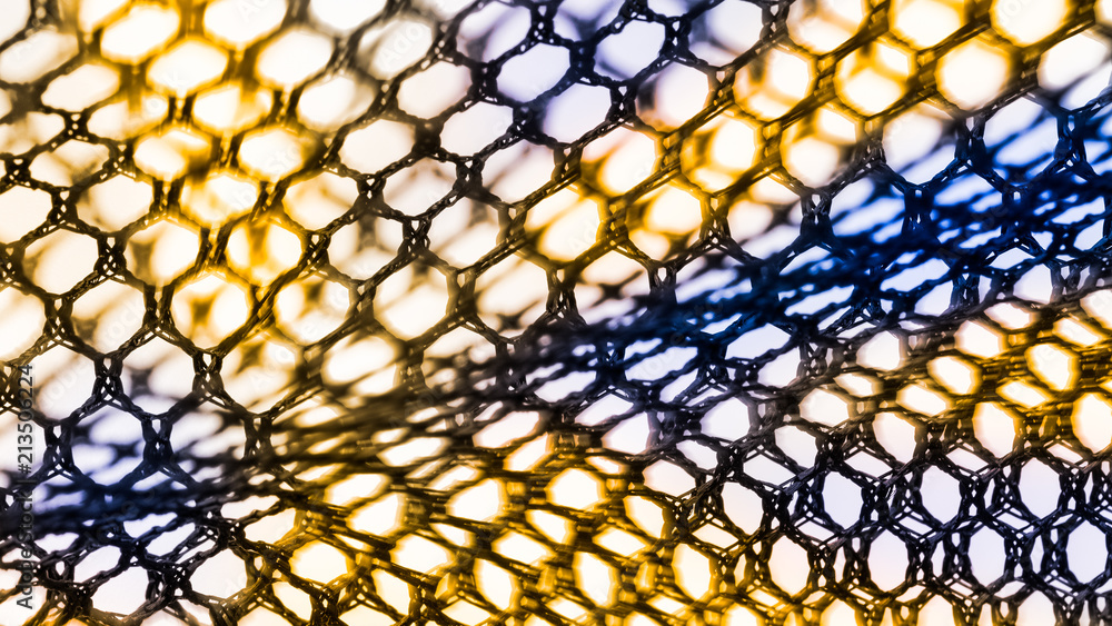 Wall mural : Abstract texture of net with hexagonal cells - artistic detail of the decorative netting in black, ye