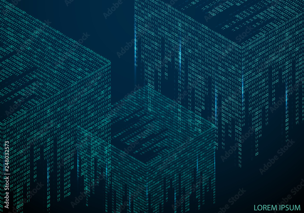 Wall mural abstract texture with the encoding symbols of the numbers 1 and 0, placed on the sides of the cube.