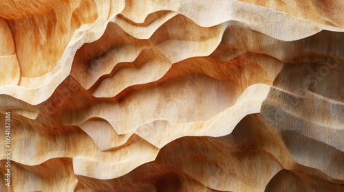 The watermark will not be included on Wall mural.: Abstract textured surface with flowing, wave-like patterns in warm tones -