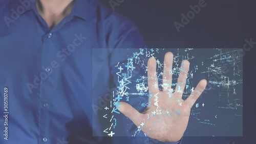 The watermark will not be included on Wall mural.: Abstract the launch of the computer game - a person touches a futuristic digital screen on which a vi