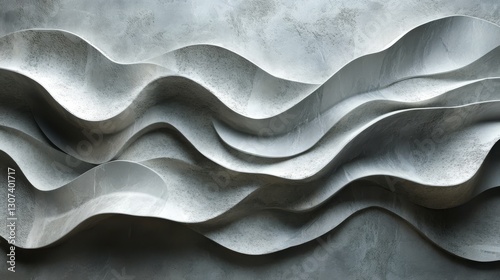Wall mural : Abstract three dimensional waves of grey material are featured in the image