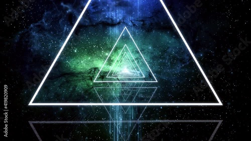 Wall mural abstract triangle neon glow with nebula background loop. futuristic vj motion graphics, club concert