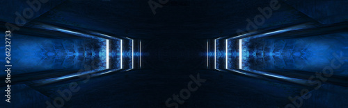 The watermark will not be included on Wall mural.: Abstract tunnel, corridor with rays of blue and pink light and neon highlights - abstract blue and pi