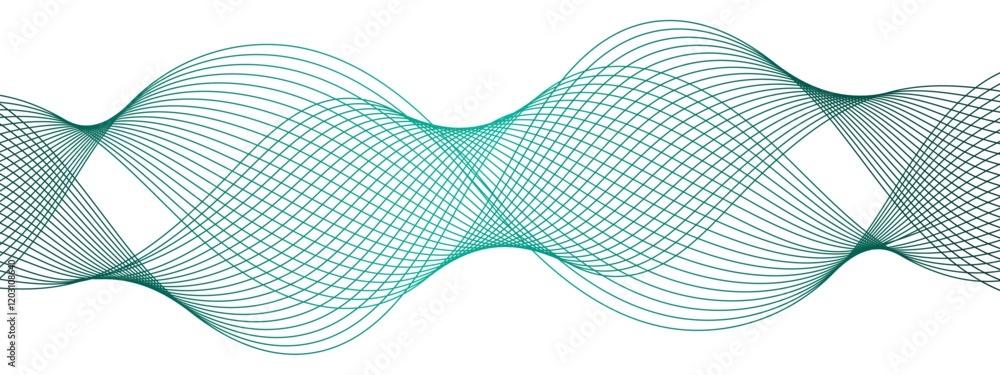 Abstract turquoise wave line vector background, fluid flowing curves, dynamic motion design for techWall mural