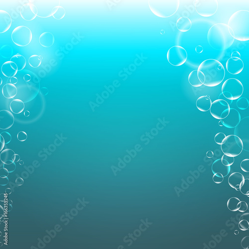 Wall mural : Abstract underwater background with transparent bubbles and empty space