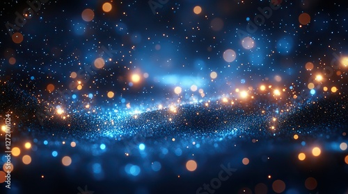 Wall mural : Abstract vector background featuring bokeh blue lights with sparkling circles,glowing texture