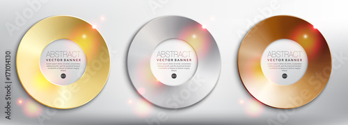 Wall mural abstract vector banners set of 3. gold, bronze and silver disks. isolated on the white background. e