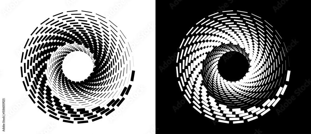 The watermark will not be included on Wall mural.: Abstract vector circle frame with rectangles as logo or emblem - spiral design element or icon - black