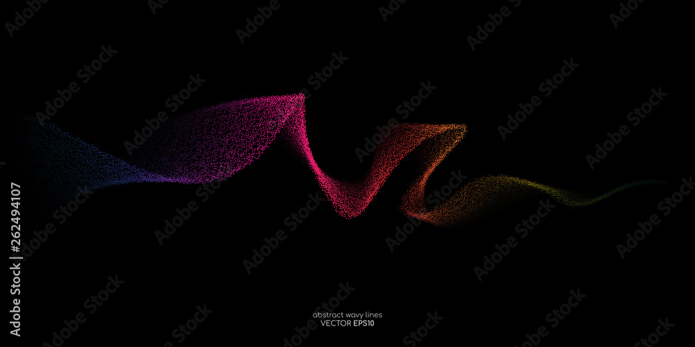 The watermark will not be included on Wall mural.: Abstract vector colorful dot particles wavy line flowing isolated on black background for design ele
