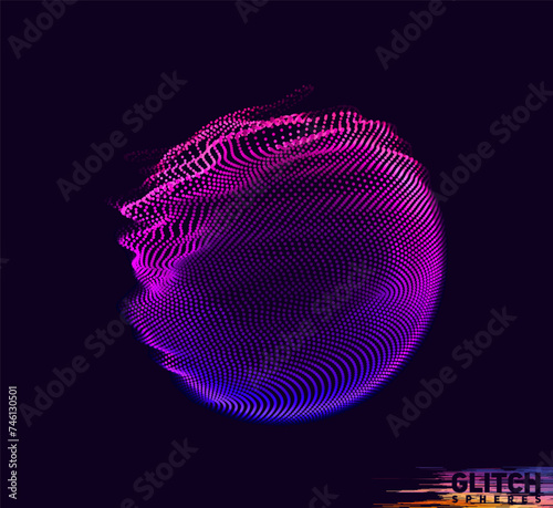 Abstract vector colorful mesh on dark background - futuristic style card - corrupted point sphereWall mural
