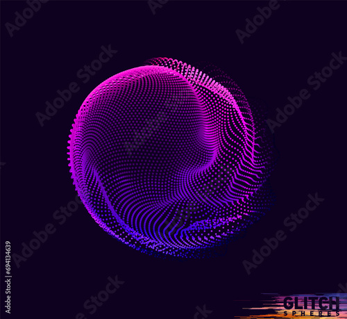 Abstract vector colorful mesh on dark background - futuristic style card - corrupted point sphereWall mural