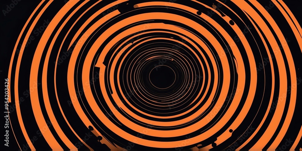 The watermark will not be included on Wall mural.: Abstract vector concentric circles with black to orange gradient background