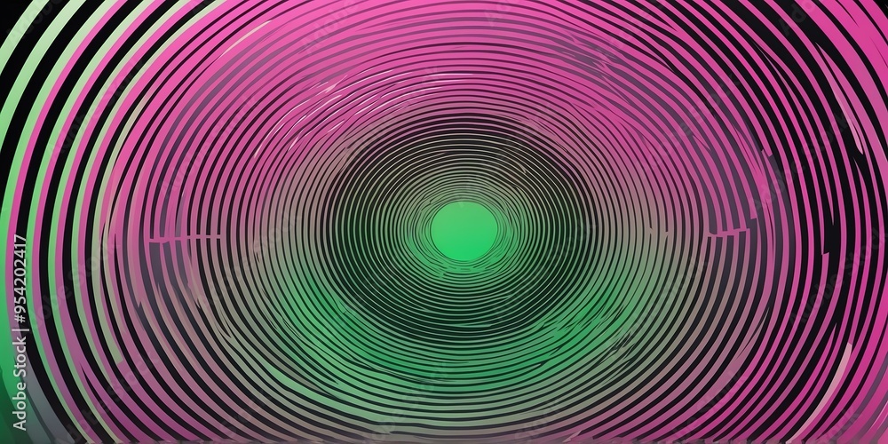The watermark will not be included on Wall mural.: Abstract vector concentric circles with pink to green gradient background