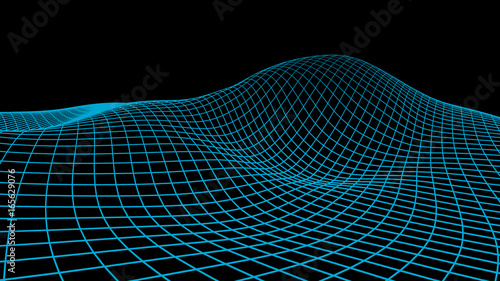 The watermark will not be included on Wall mural.: Abstract vector cyberspace background - landscape grid illustration - 3d technology wireframe vector -