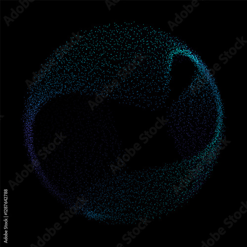 The watermark will not be included on Wall mural.: Abstract vector dot particles fluid flowing round shape wavy smooth curve blue green gradient light
