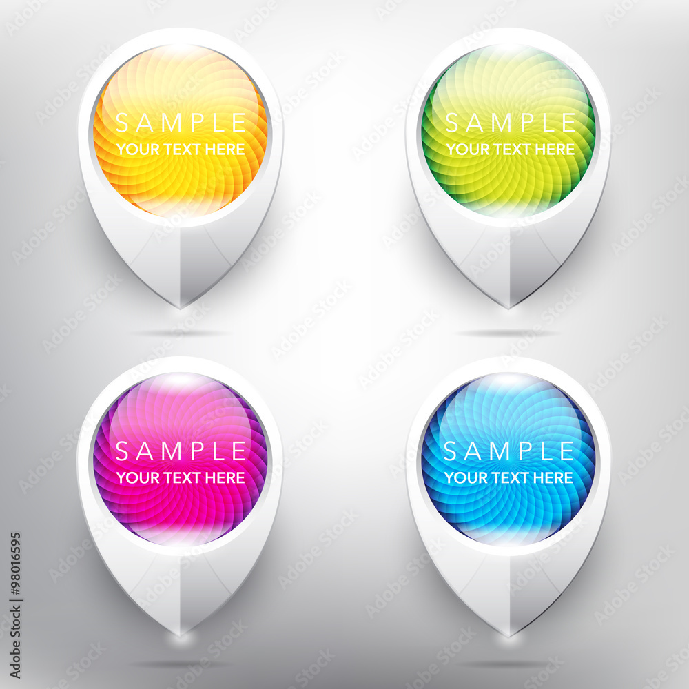Abstract vector map pointers set - colorful and glossy on white panel - vector illustration - eps10 - Wall mural