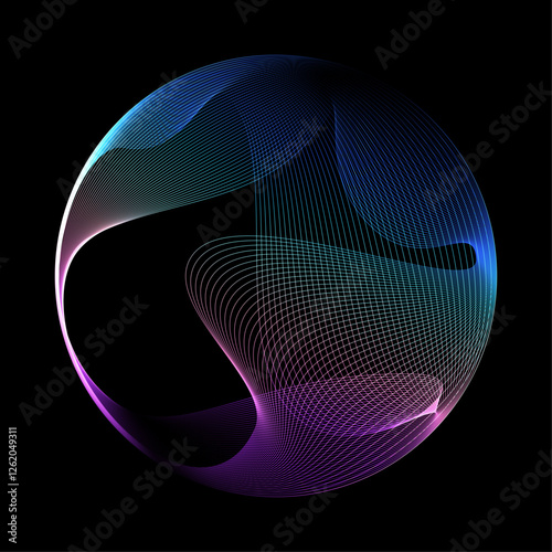 Wall mural : Abstract vector round shape of wavy lines flowing smooth curve colorful spectrum light on black back