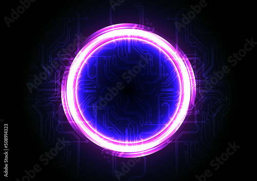 Wall mural abstract vector technology design background concept with circuit and ring light effects background,