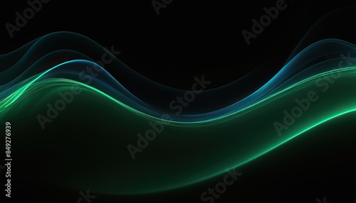 The watermark will not be included on Wall mural.: Abstract vector wave lines flowing dynamic in blue green colors isolated on black background