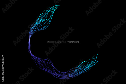 Wall mural : Abstract vector wavy dynamic blue light lines circle swirl round frame isolated on black background