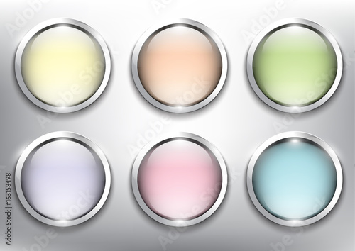 Wall mural abstract vector web buttons set of 6. isolated with realistic, transparent glass shine and shadow on