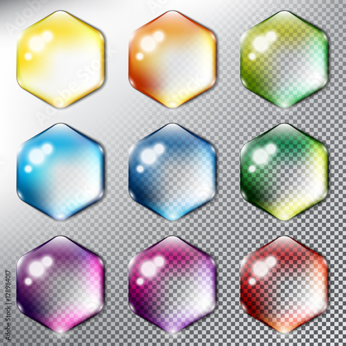 The watermark will not be included on Wall mural.: Abstract vector web buttons set of 9 - isolated with realistic, transparent glass shine and shadow on
