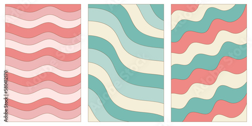 The watermark will not be included on Wall mural.: Abstract vertical backgrounds with colorful wawes in trendy 70s, 60s retro style - vector