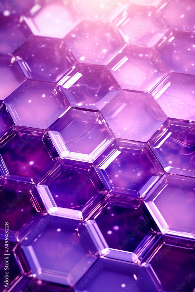 Wall mural abstract vertical mystical purple background with crystalline hexagons, creating a mesmerizing illus