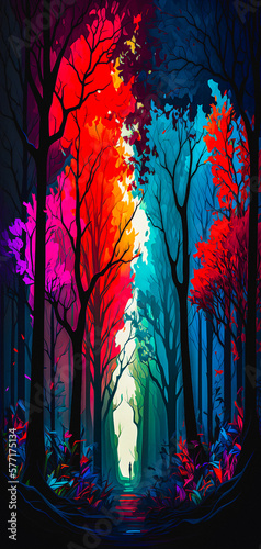 Wall mural abstract vibrant colorful forest path portrait wallpaper - generative ai - Wall murals Wall mural abstract vibrant colorful forest path portrait wallpaper - generative ai - Wall murals