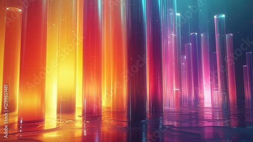 The watermark will not be included on Wall mural.: Abstract vibrant light pillars representing energy and color flow in a modern artistic digital envir