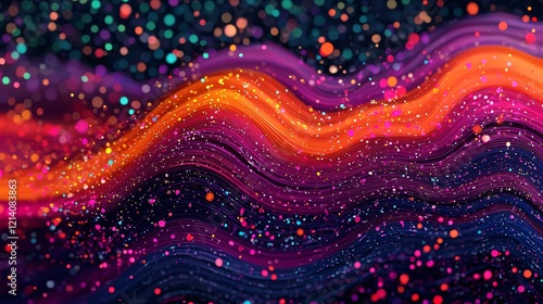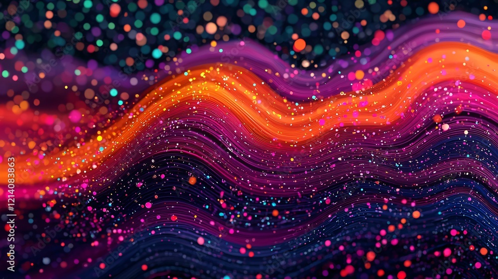 Wall mural : Abstract vibrant waves with sparkling glitters colorful swirls and bokeh lights background