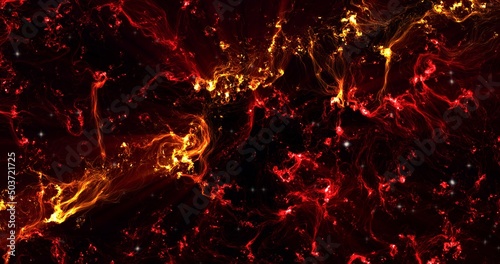 Wall mural abstract view from plasma fire hell. red wallpaper, the universe is filled with nebulae and galaxies