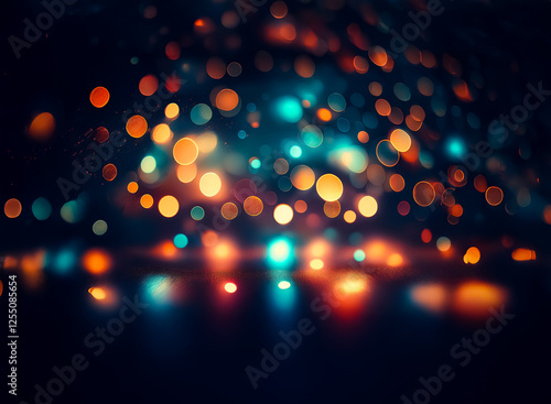 The watermark will not be included on Wall mural.: Abstract view of vibrant bokeh lights creates a festive and dreamy atmosphere - the blurred circles o